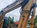 经检测,该设备机型为现代R150LC-9挖掘机,出厂年份为2014年, 非事故车, 非火烧车, 非水淹车;