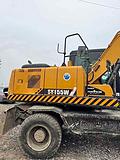 经检测,该设备机型为三一重工SY155W挖掘机,出厂年份为2019年, 非事故车, 非火烧车, 非水淹车;